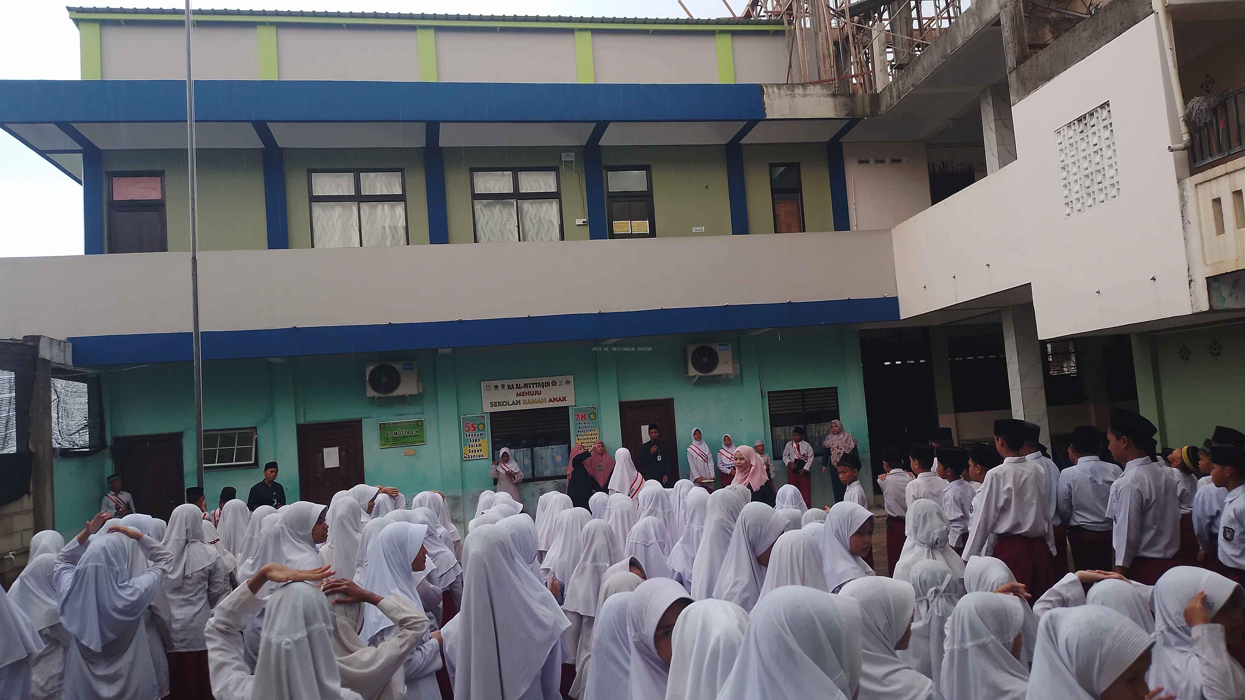 Semangat Tak Padam Meski Dihujani Gerimis, MIS Al-Muttaqiin Gelar Upacara Bendera Hari Senin